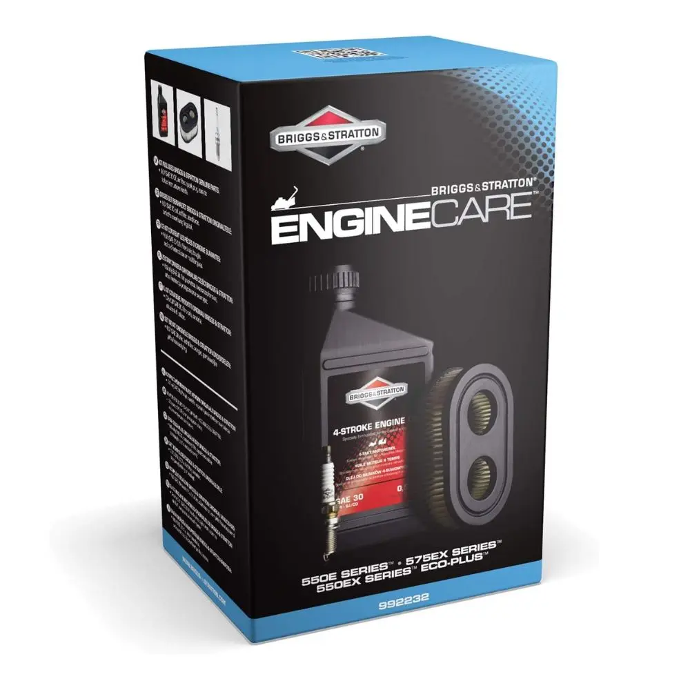 Complete Briggs & Stratton Engine Care Kit including genuine oil, spark plug, and air filter for reliable servicing. Designed for 550E, 575EX, and 550EX Series engines, it supports smooth performance, easier starting, and long-term engine protection.