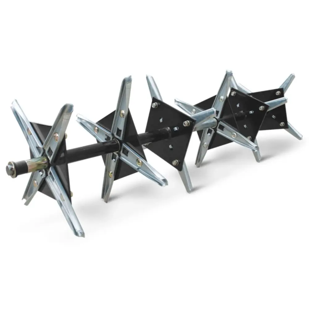 Designed for use with the Husqvarna attachment platform, this plug aerator features durable rustproof knives and efficient soil penetration, making it ideal for reducing compaction and improving overall lawn condition.