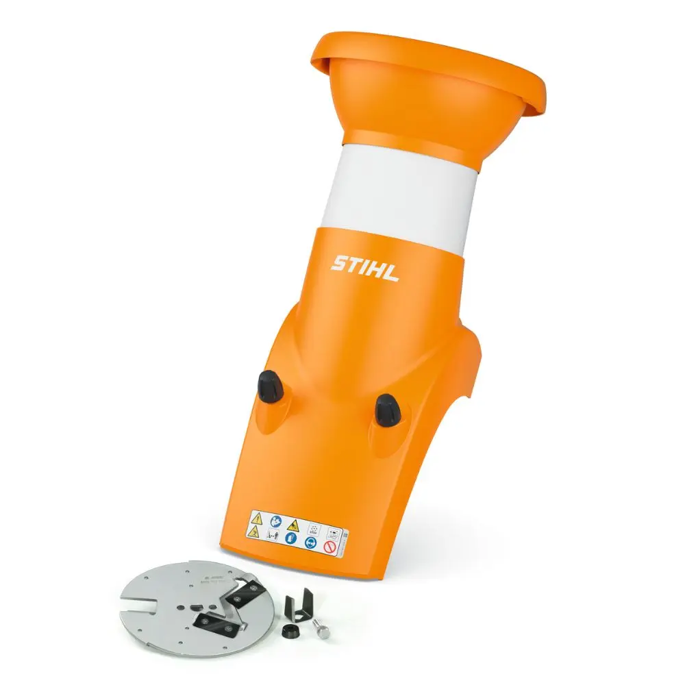 Upgrade your STIHL shredder to handle thicker branches efficiently with this inclined feed chute set. Featuring a soundproofed angled hopper and Multi Cut 150 system, it improves feeding control, reduces noise, and boosts shredding performance.