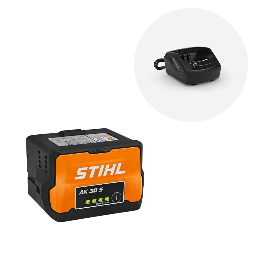 This STIHL kit pairs the powerful AK 30 S battery with the AL 101 charger, delivering long lasting runtime, intelligent power control, and reliable performance for demanding garden tasks. A perfect choice for homeowners needing strong, consistent cordless power.