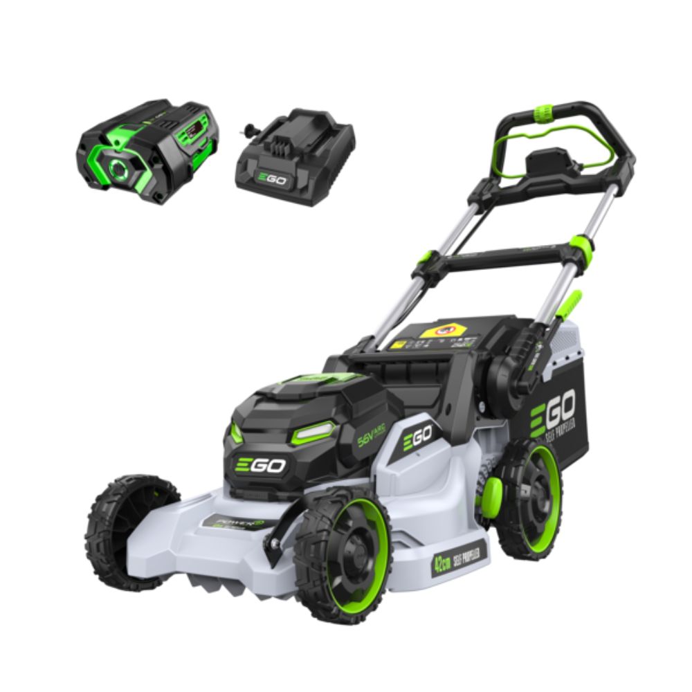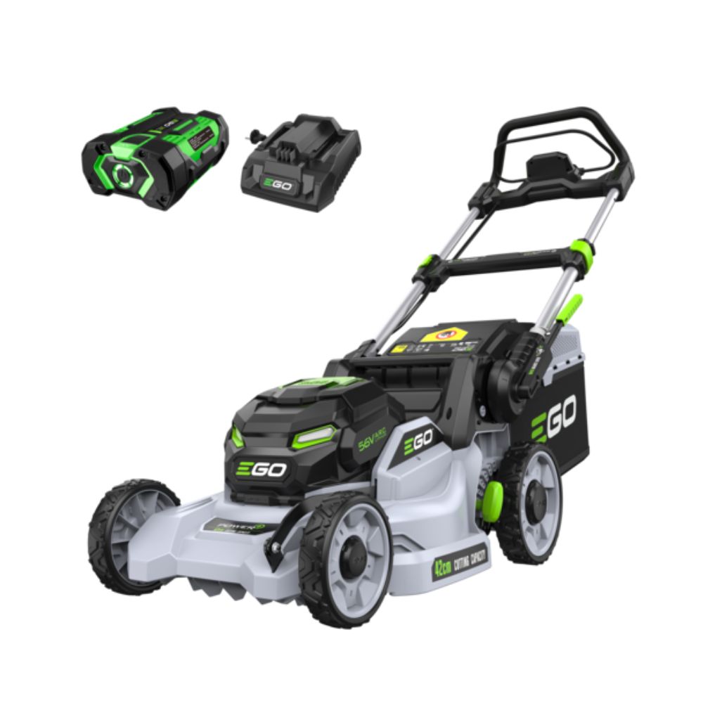 The EGO 42cm Self-Propelled Cordless Lawn Mower delivers exceptional cutting power, intelligent LED control, and smooth self-propelled performance. With adjustable blade speeds and a 55L bag, it ensures effortless, precise, and efficient mowing every time.