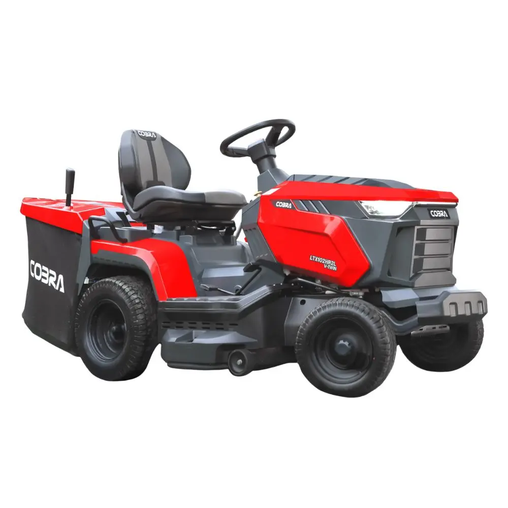 Built for efficient lawn care, the Cobra LTX102HR2L features a 586cc Loncin V-Twin engine, hydrostatic drive, and 102cm cutting deck. The LCD information dashboard, 280-litre grass collector, and adjustable comfort seat ensure productive, comfortable mowing.