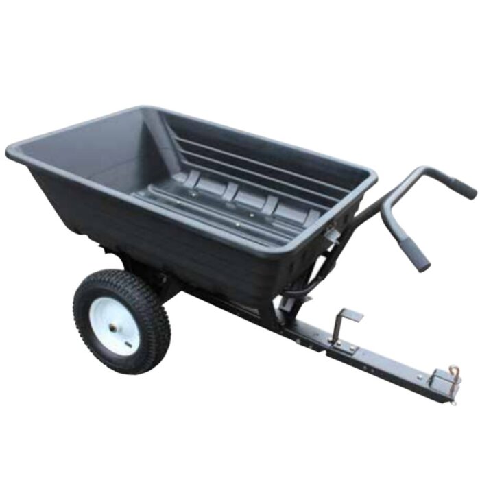 A versatile trailer which can be used with your lawn tractor as a tow behind trailer or as a hand wheeled trailer with a t-handle for a comfortable operation.