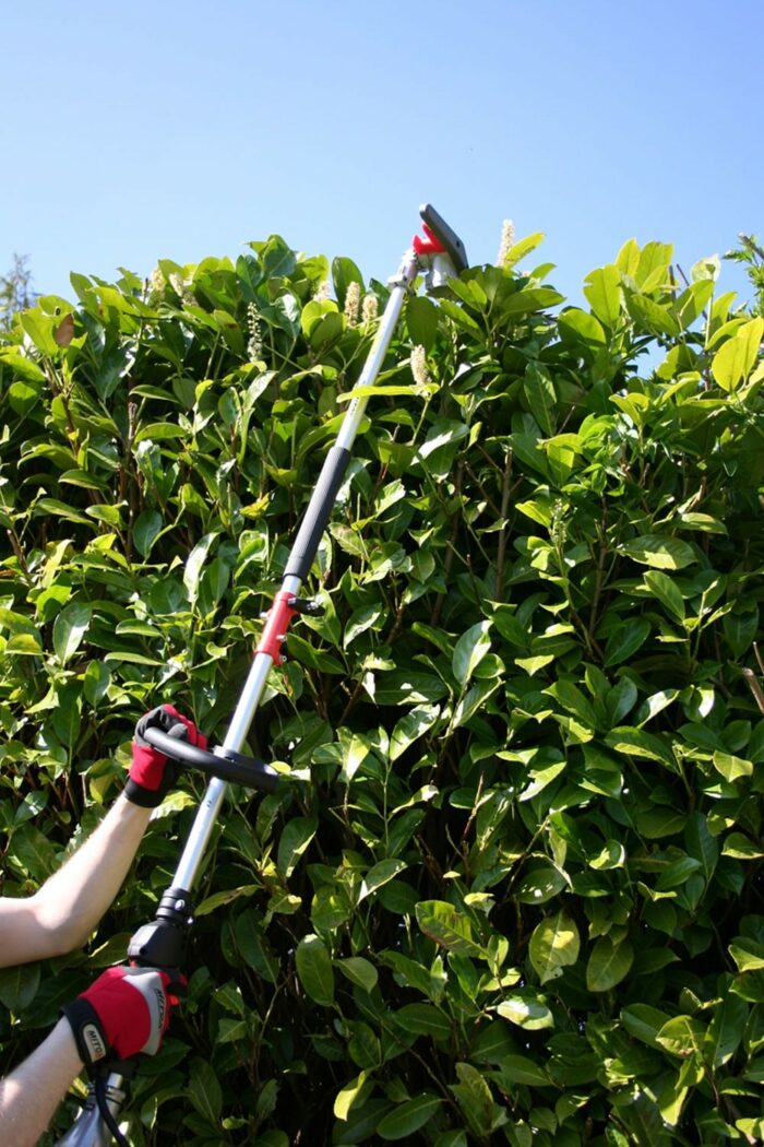 Enjoy safe trimming of tall hedges with this long reach tool.
