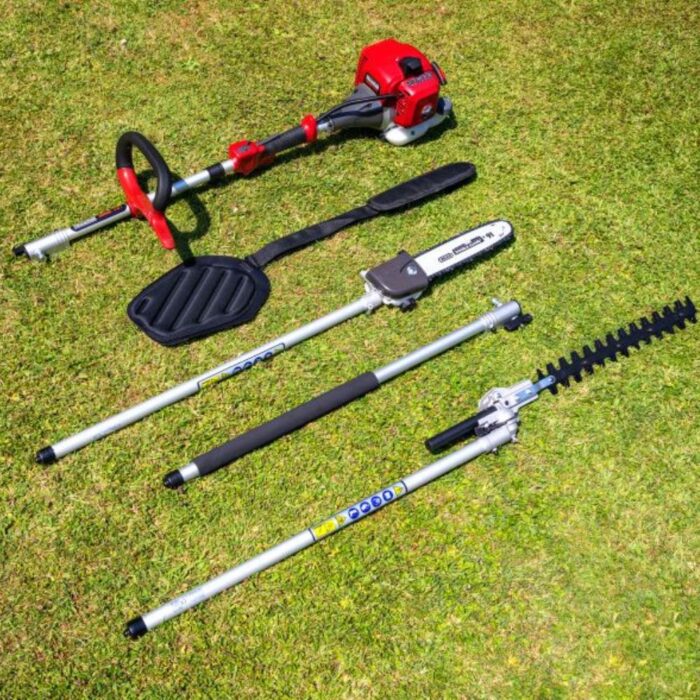 This 5 in 1 Multi-Tool from Mountfield comes with a hedge trimmer, pole pruner, metal grass blade, extension pole and a Tap ‘n’ Go nylon head for grass trimming, offering exceptional versatility and value.
