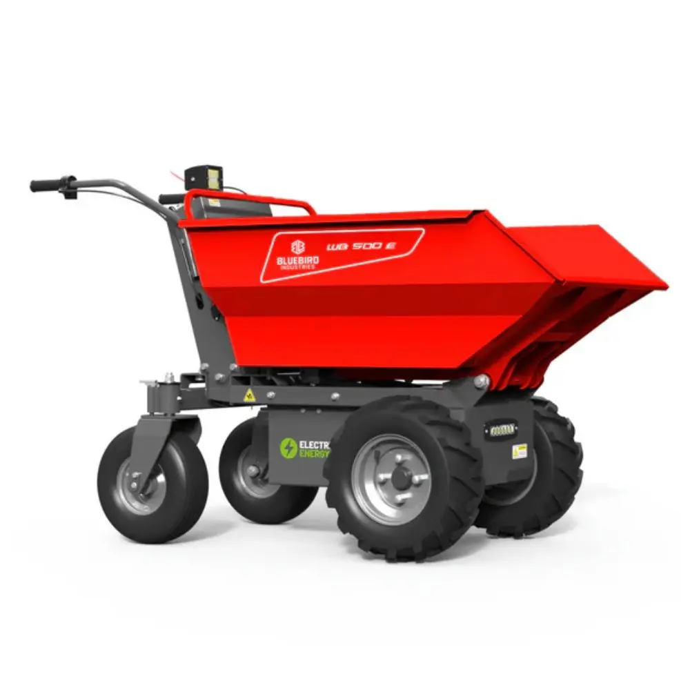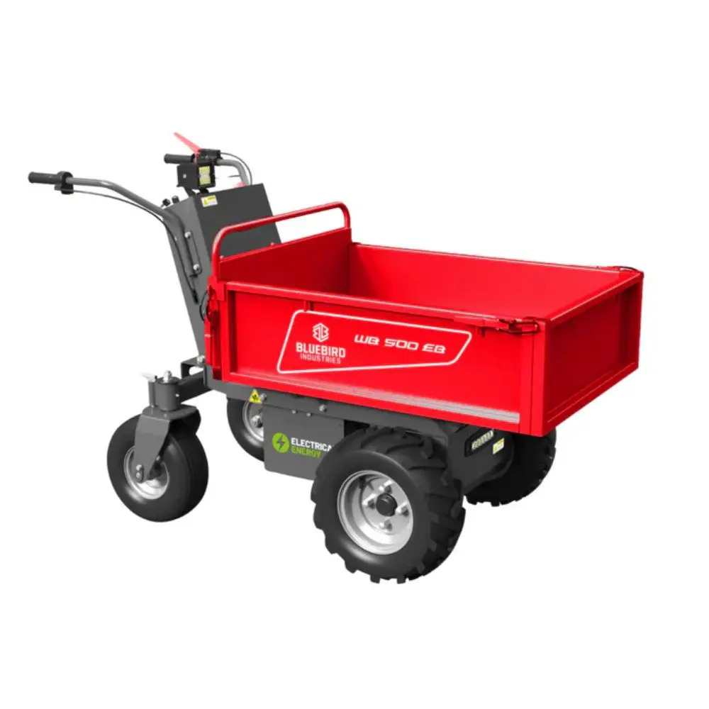 The Bluebird WB 500 E electric power barrow offers 500 kg load capacity, electric drive, and a versatile dumper body, delivering safe, efficient material transport with long runtime and simple, precise control.