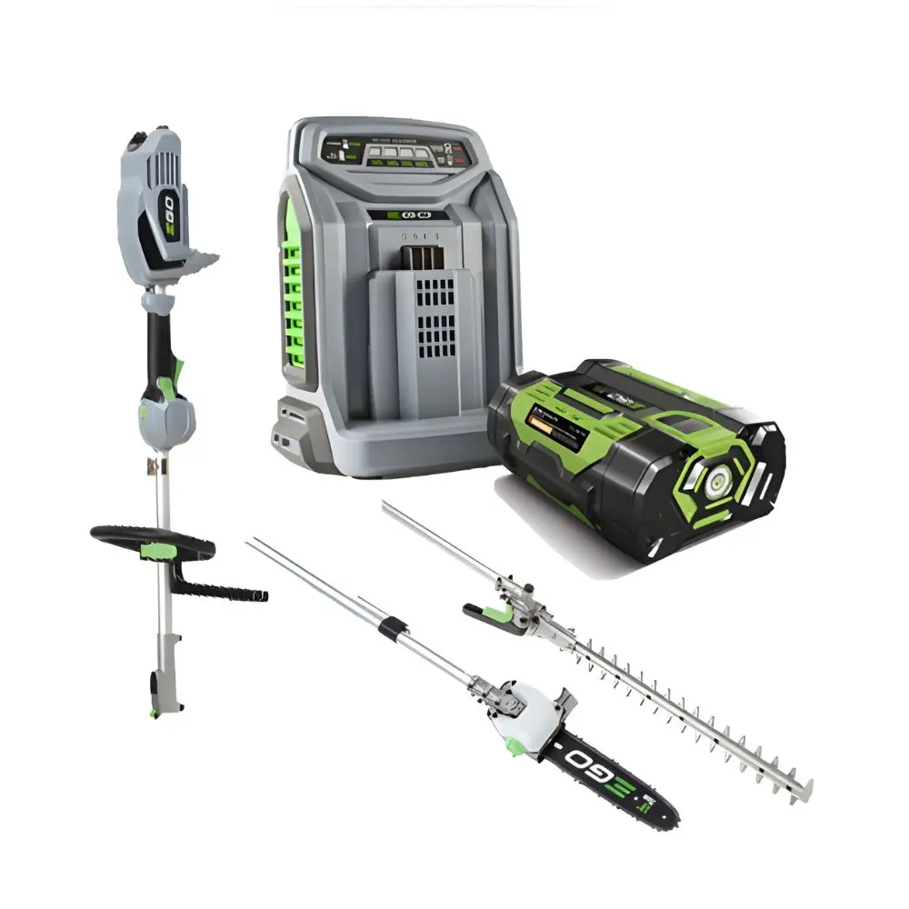 This is a Multi Tool package comprised of a battery powered engine unit and attachments, including a Trimmer, hedge trimmer, pole pruner and edger, supplied complete with 5 Ah battery and rapid charger.