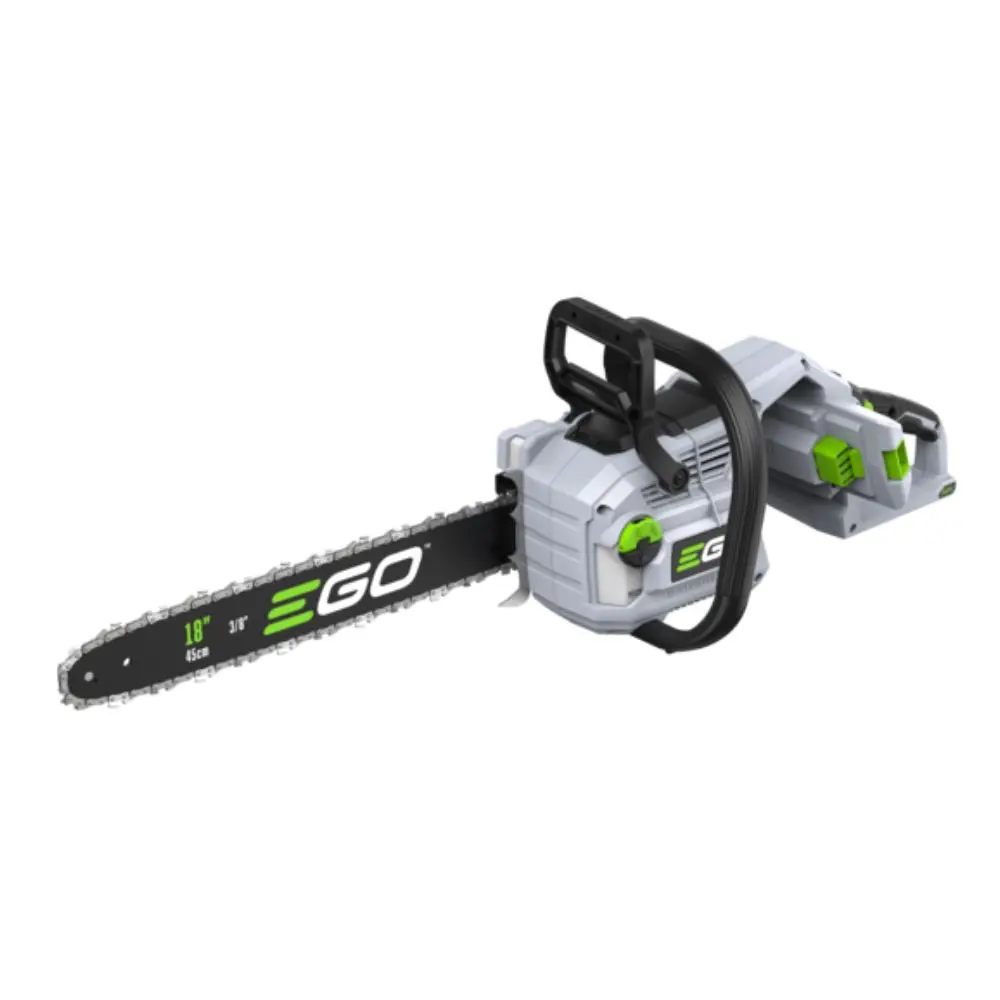 The EGO 45cm Cordless Chainsaw delivers professional cutting power with a 22 m/s chain speed, brushless motor, and LED display, offering exceptional performance, precision, and runtime for demanding garden and forestry tasks.