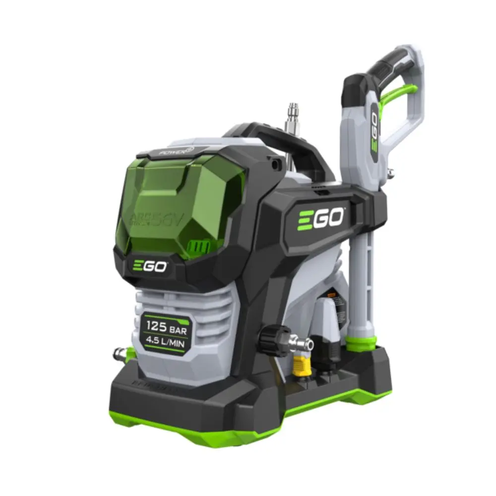 The EGO Compact Pressure Washer delivers 125-bar cleaning power in a lightweight, portable design. With four nozzles, quick connections, and foam cannon, it provides effortless, high-performance cleaning for vehicles, patios, and outdoor surfaces.