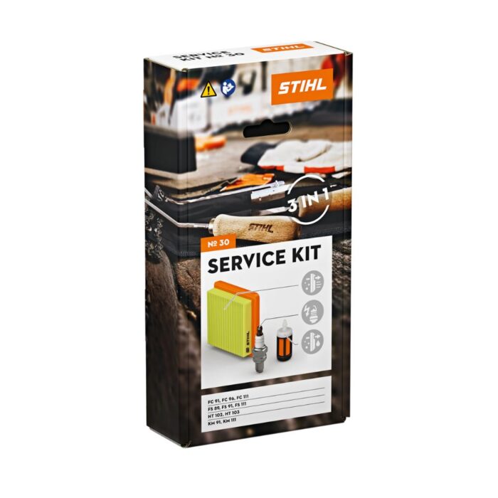 A fantastic kit including a paper air filters, a fuel filter and a spark plug to maintain and optimise the quality of compatible STIHL petrol pole pruners, brushcutters and Kombi Engines.