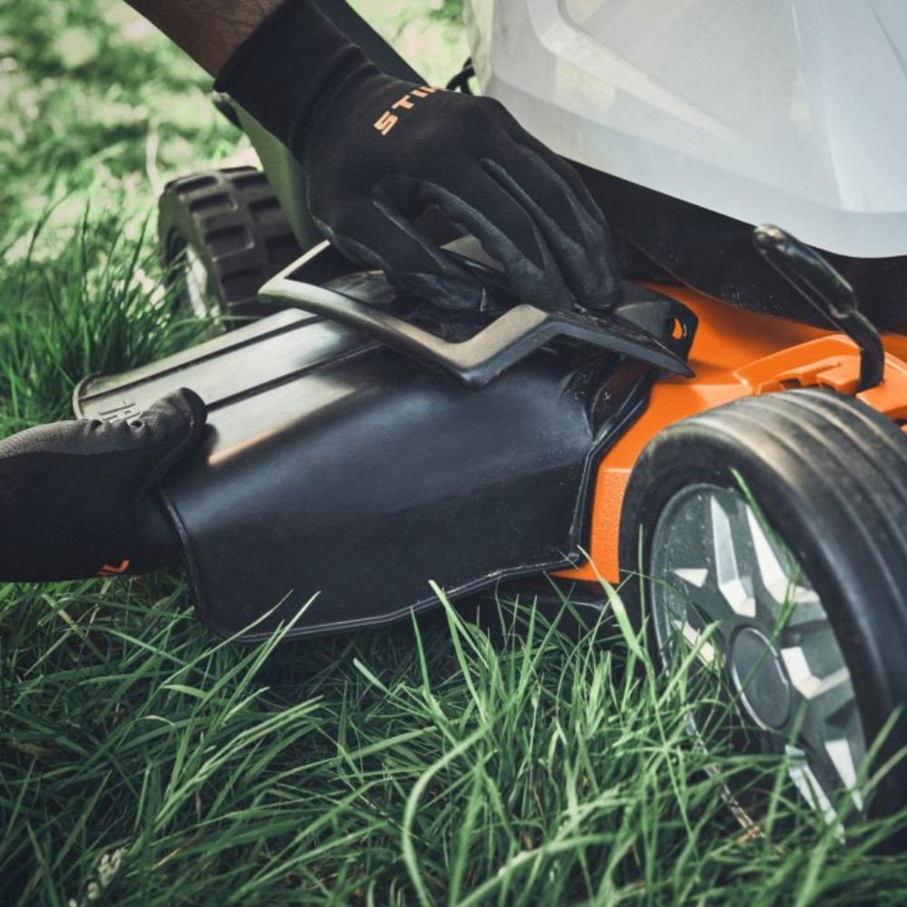 The RMA 7 RV offers two mowing options to suit your needs. You can mulch the grass for a natural, nutrient-rich finish or use the side-discharge flap to spread the cuttings as you mow. Mulching finely cuts the grass and returns nutrients to the soil, promoting healthier lawn growth. If you prefer mowing without stopping to empty clippings, the side discharge function efficiently spreads them, making it perfect for large spaces.