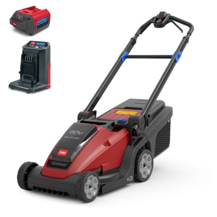 This battery lawnmower is one of Toro’s Flex-Force Power System™, so the battery in the kit is fully interchangeable and can be used to power any of this line of tools, including hedge trimmers, leaf blowers, and more.