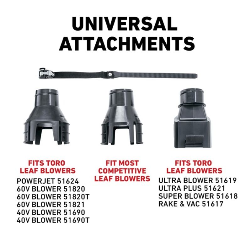 The kit includes 4 extension tubes that effortlessly snap together without the need for any tools. Plus, it comes with universal attachments, compatible with most leaf blowers (check out the image for details).